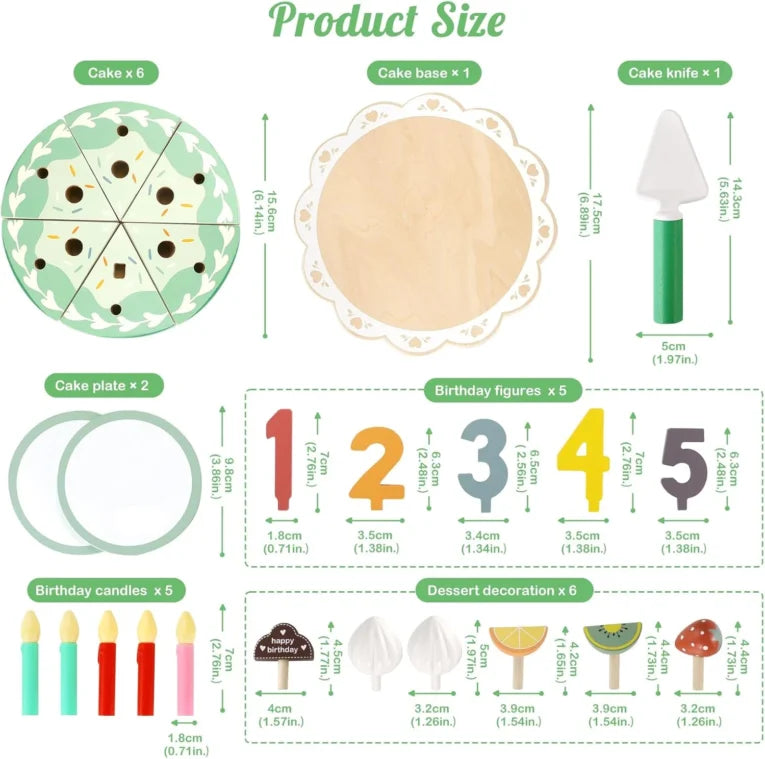 Torta de madera 🎂 que convierte cada día en una celebración llena de diversión y aprendizaje. Este set completo incluye bandeja, cinco trozos de pastel con velcro, cinco velas de juguete, tres frutas decorativas, dos porciones de crema, chocolate, números personalizables y espátula de plástico 🎉. Perfecto para juegos de rol, permite a los niños organizar fiestas imaginarias mientras desarrollan motricidad fina, coordinación mano-ojo y creatividad sin límites 🎨. Cada elemento se adhiere con velcro, facilitando el armado y desarmado una y otra vez 🔄. Ideal para niños a partir de los 3 años, estimula el juego cooperativo, la imaginación y las habilidades sociales 👧👦. Fabricado con madera segura y colores vibrantes, es el regalo perfecto para que tu hijo celebre cumpleaños todos los días ✨🎁.